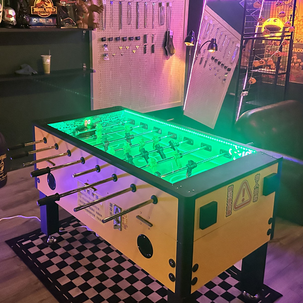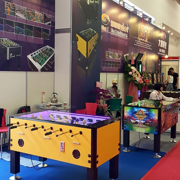 自帶飲料杯架,讓場地客戶有更好的愉快體驗,絢麗燈光模式下自帶背景音樂(可自行下載音樂)、强化玻璃保護機臺防撞擊、LED計顯示板、可調節音量大小、金屬製可調高度桌脚(凹凸地面適用款)。